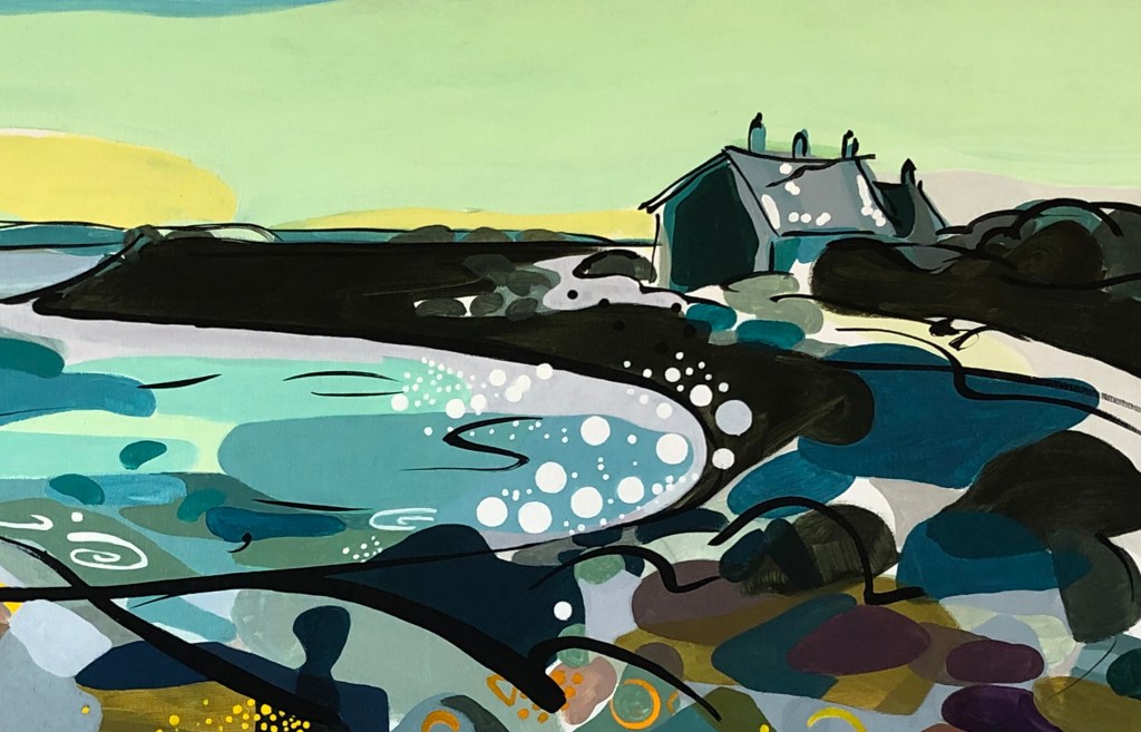 Detail from acrylic painting of The Fishermen’s Cottages, Stolford.