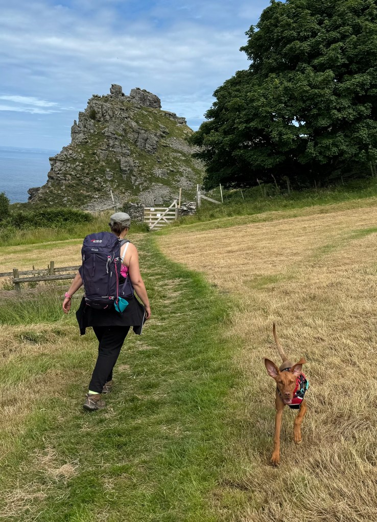 Yomping towards Valley of the Rocks with Ruby dog running circles around us!