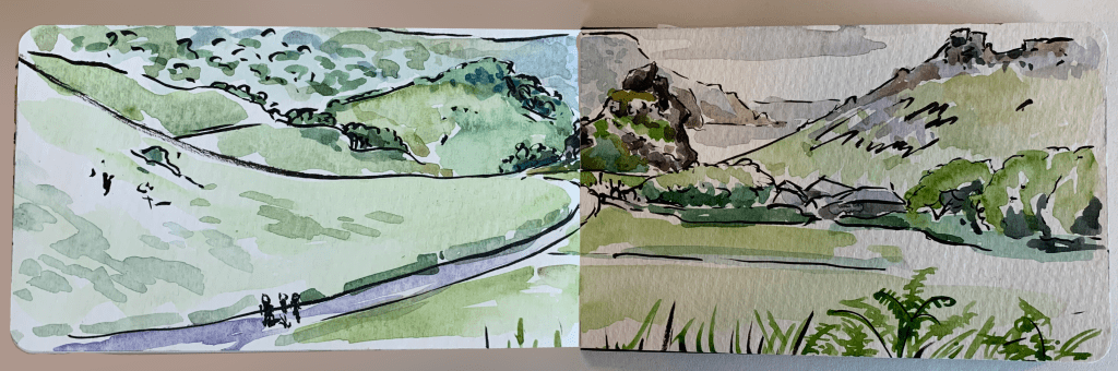 North Devon again this weekend! This time we strapped ourselves to heavy rucksacks and stayed out over night. We walked from Combe Martin (see above) to Barbrook just up from Lynton and the Valley of Rocks (see below) in two days. Very slow walking yes! But plenty of stops for sketching and picnicking.