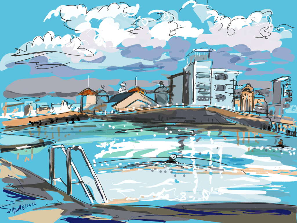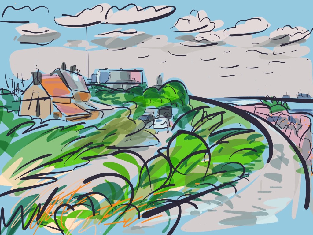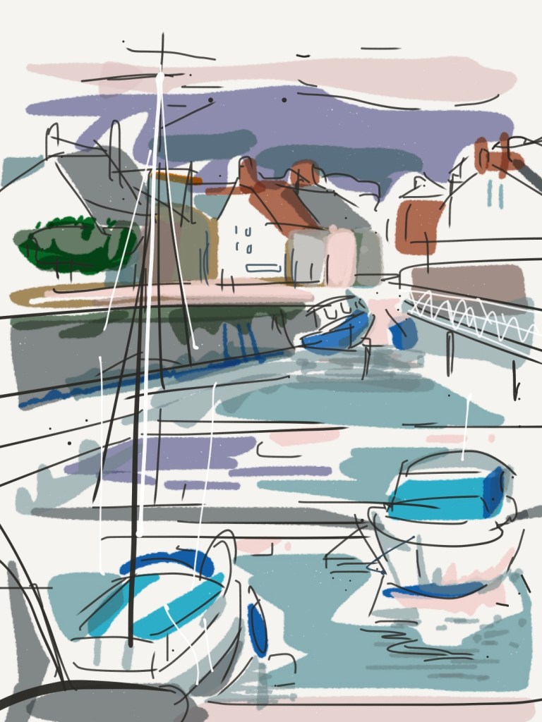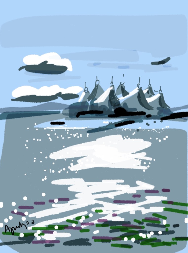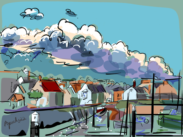 A study in light, color, form and atmosphere. Painted on the iPad inspired by my sense of place. Prints available on paper or canvas at most sizes.